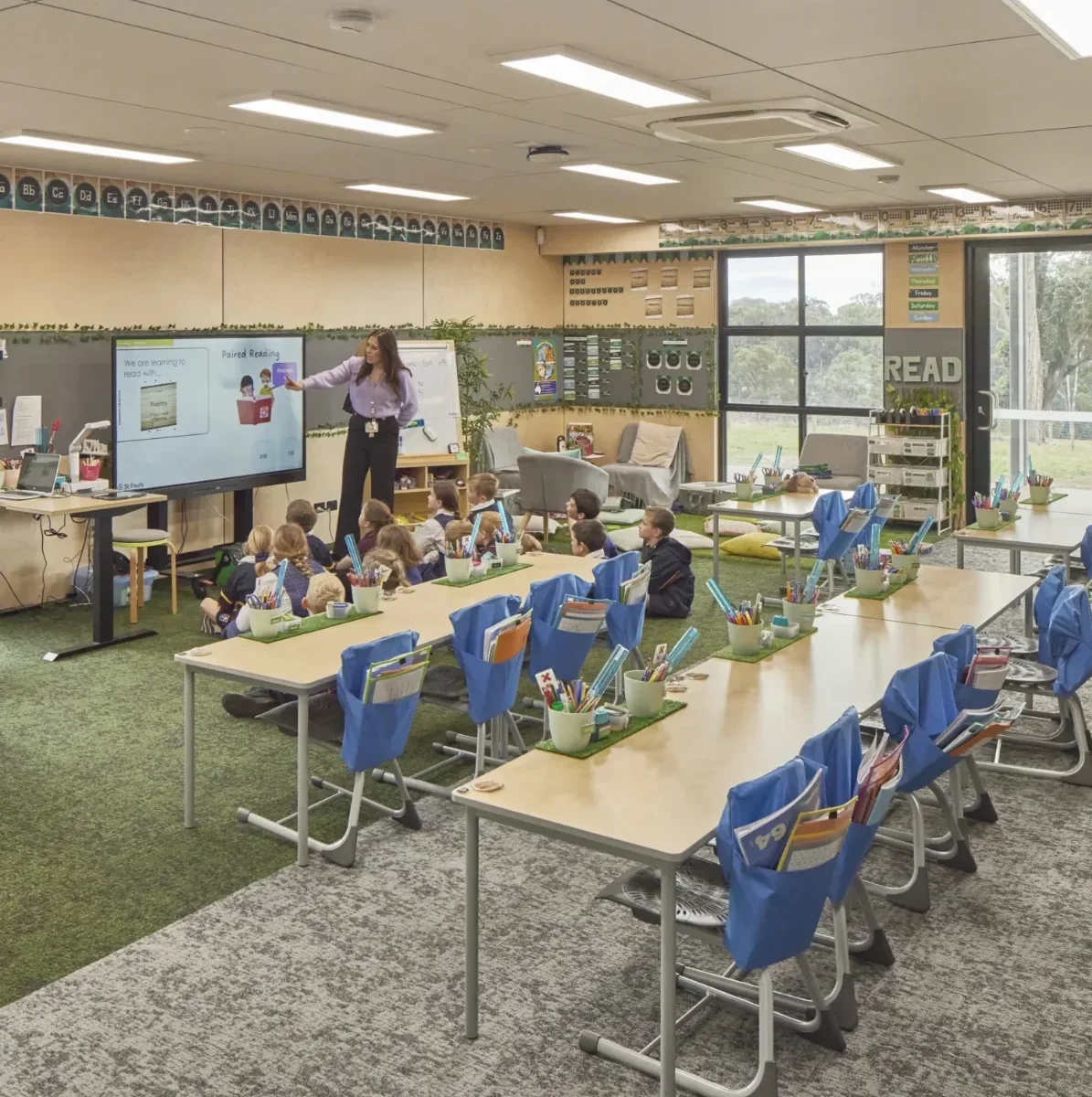 4 classrooms with double height central circulation space, amenities & outdoor learning spaces