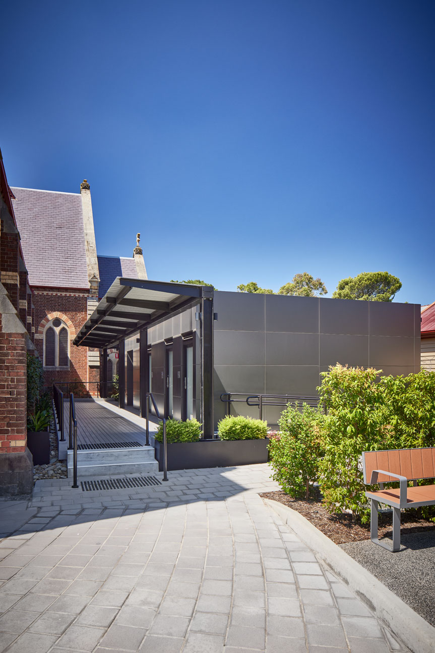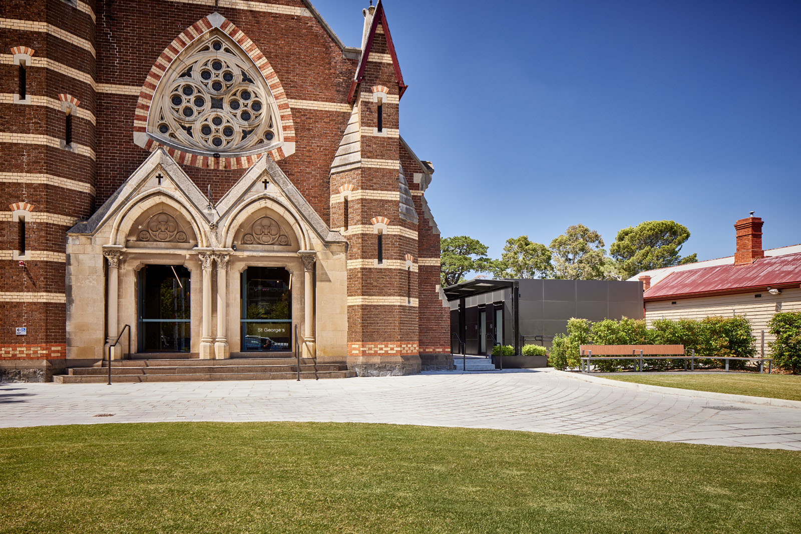 The completed amenities building formed an important part of the successful transformation of St George’s Church into a state-of-the-art performing arts centre.